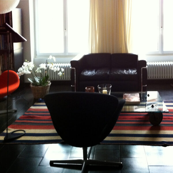 a strong and graphic kilim can open a room, even if it is a small space